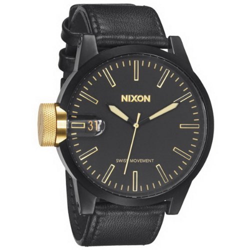 -. Title : Nixon Chronicle Watch One Size Matte Black Gold