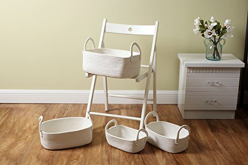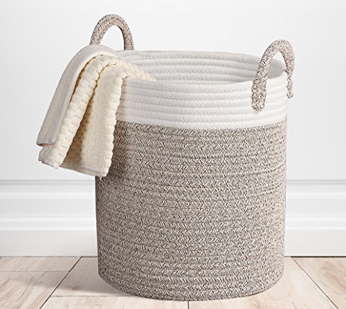 ---It can be a laundry hamper or a closet organization. This soft cotton hamper protects your clothes from snagging or getting mildewed as you place them in the hamper. The white cotton rope weaving adds a elegant, natural touch to your closet or laundry room.