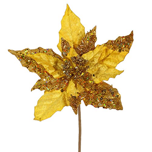 Vickerman 11" Elegant Gold Velveteen Artificial Christmas Poinsettia Flower Pick