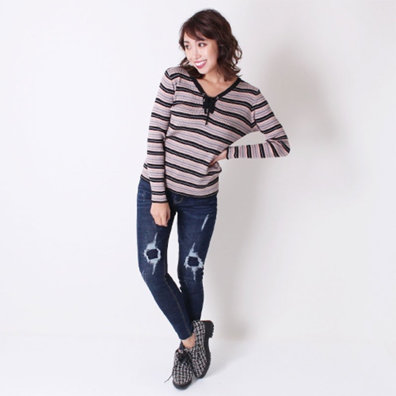シンプルでかわいさ◎マルチボーダーリブニット! |
