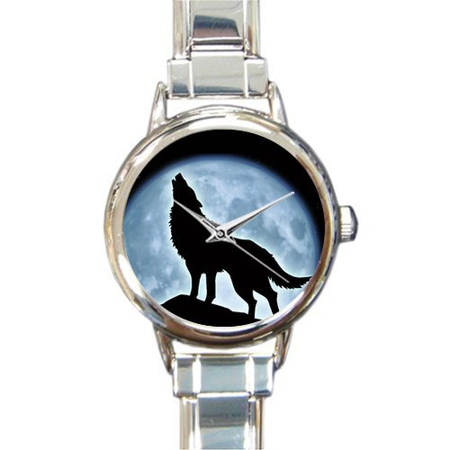 -. Title : Personalized Watch Howling Wolf At full Moon Round Italian Charm stainless steel Watch