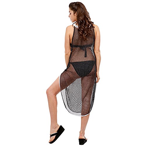 Product Description? Color : Black ? Size : 23" X 39" ? Material : 100% Acrylic ? Sheer vest long top with lace trim0