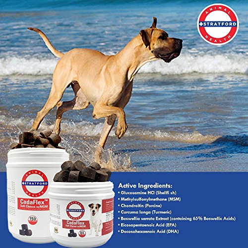 Stratford Pharmaceuticals CadaFlex Soft Chews with MSM - Glucosamine for Dogs - All-Natural Hip & Joint Pain Relief -Glucosamine Chondroitin Dogs Treats - Large Dogs - 150 Soft Chews