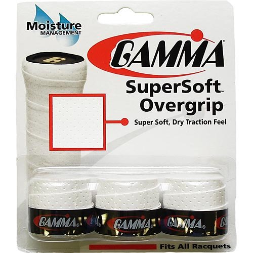 ReleaseDate : 2010-04-07 Studio : Gamma Publisher : Gamma Binding : Sports Product Description SuperSoft Overgrip features a unique resin coating that is soft and easy on your hand for hours of comfortable play. The Dry Traction surface provides 75 percent more traction than a typical dry grip. SuperSoft Overgrip does not become slippery while playing because Micro Pores wick moisture away from your hand 4 times faster than non-perforated overgrips. Many dry overgrips have their surfaces degraded through a sanding process to achieve a dry feel, while SuperSoft Overgrip is manufactured with a high quality soft resin coating that we leave intact. As a result other dry overgrips become slippery or wear out quickly. Simply put, SuperSoft is a better quality dry overgrip that performs and lasts longer than the most popular dry overgrips on the market. 0