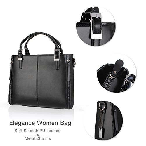 -. Title : Ladies Satchel Handbags PU Leather Business Top Handle Bags with Shoulder Strap,Black Wine Red & Brown
