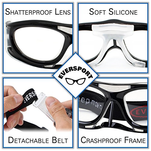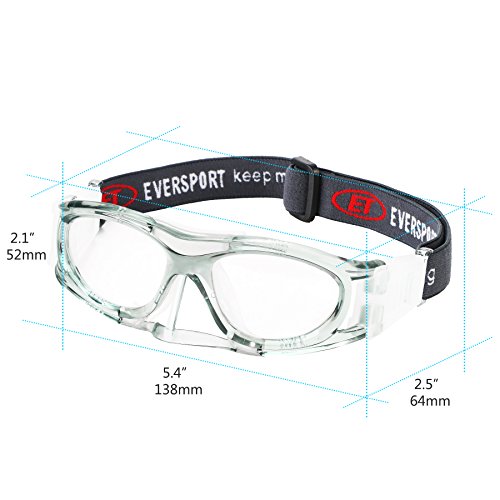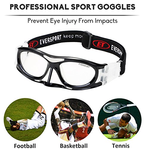 -. Brand : EVERSPORT -. Department : unisex -. Feature : PROTECTIVE: Hard frame of the goggles can well protect your eyes from being hurt by fast-moving objects during exercise, like basketball and football. / REPLACEABLE: The perspective, windproof and dustproof lenses can be easily replaced by your own prescription lens. / COMFORTABLE: The special soft silicone nose pad makes it very comfortable to wear and use. / UNIQUE DESIGN: There is a special nose protector design. It is made to protect nose from being hurt or help protect those whose nose has already been hurt. / PORTABLE: The package includes a soft portable bag and a nice colorful box. You can use the bag to carry goggles everywhere easily. While the colorful box makes the goggles a pretty gift for your friends. -. IsAutographed : 0 -. IsMemorabilia : 0 -. Label : EVERSPORT -. Manufacturer : EVERSPORT -. MPN : ET-511 -. NumberOfItems : 1 -. PackageQuantity : 1 -. PartNumber : ET-511 -. ProductGroup : Sports -. ProductTypeName : OUTDOOR_RECREATION_PRODUCT -. Publisher : EVERSPORT -. Studio : EVERSPORT -. Title : EVERSPORT Protective Sports Goggles Safety Basketball Glasses Eyewear for Adults with Adjustable Strap for Basketball Football Volleyball Hockey Rugby1601 -. Warranty : 30 days money back guarantee