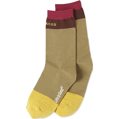 -. Binding : Apparel -. Brand : Life is Good -. Department : womens -. Feature : 1x1 ribbing at cuff / Life is Good at the foot / The Life is Good Company donates 10% of all sales to kids in need / Cotton/Nylon/Spandex -. Label : The Life is good Company -. Manufacturer : The Life is good Company -. ProductGroup : Sports -. ProductTypeName : OUTDOOR_RECREATION_PRODUCT -. Publisher : The Life is good Company -. Studio : The Life is good Company -. Title : Life is Good Women's Go Places Color Block Crew Socks