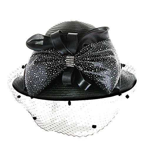 Product Description? Color : Black ? Theme : Bow ? Crown Circumference : 23" ? Crown Height : 5" ? Brim Width : 4" ? Material : 100% Polyester ? Large Bow on Front Netting Satin Braid Hat0