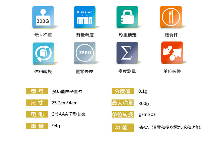 1. PC cup body, ABS spoon handle, weight sensor, stylish and elegant, easy to operate