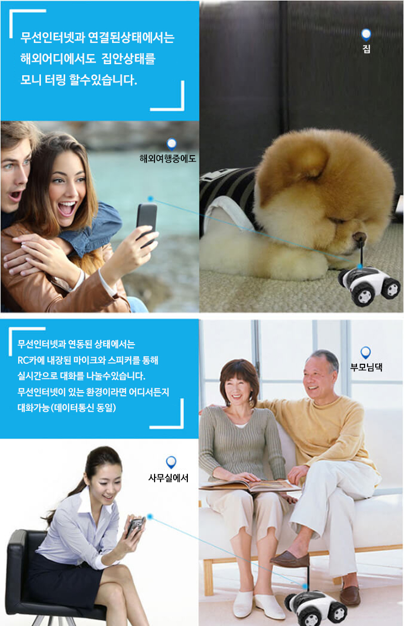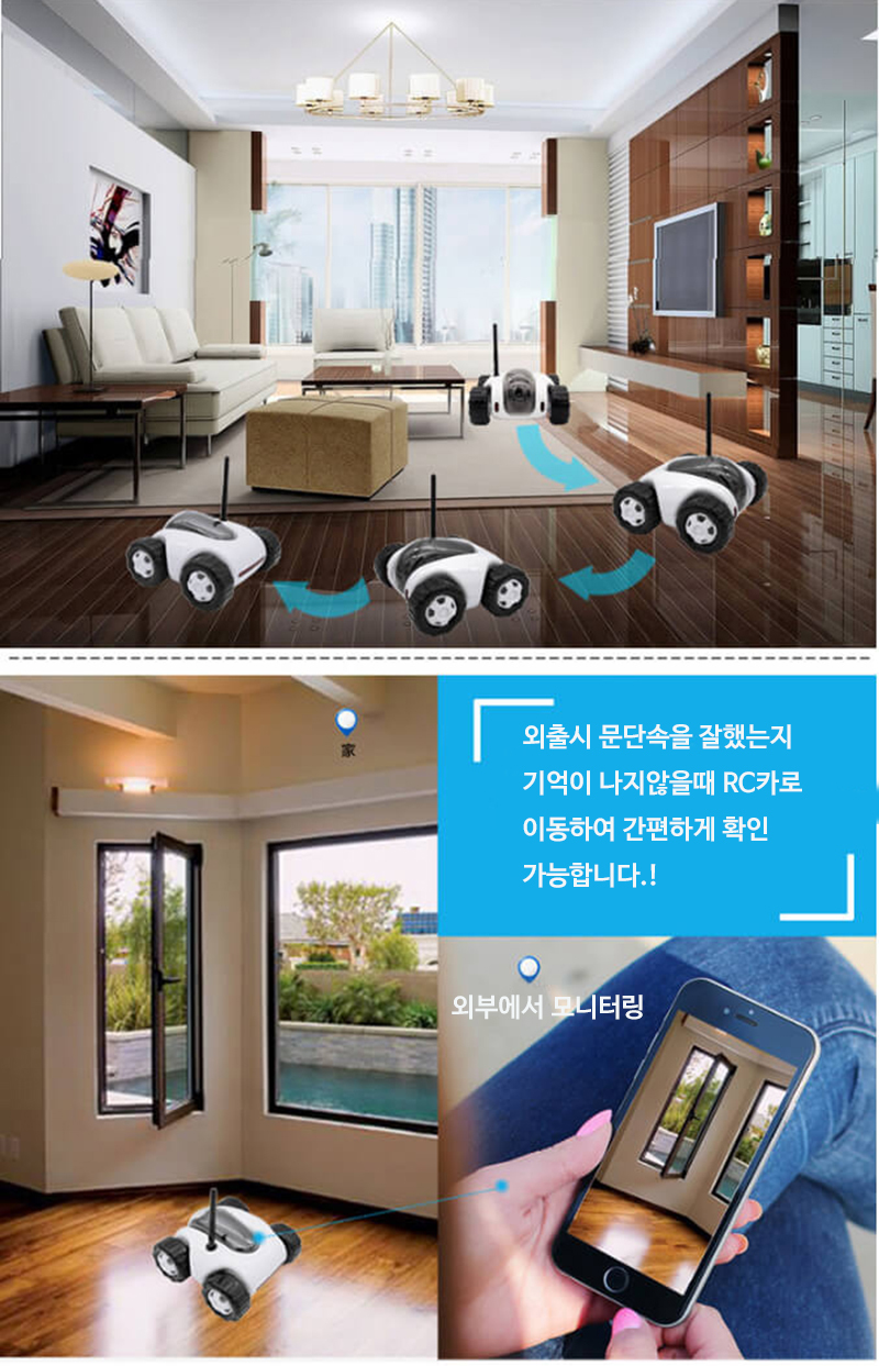 스마트폰으로 조정하여 확인하고 싶은 장소로 이동하며 실시간으로 영상을