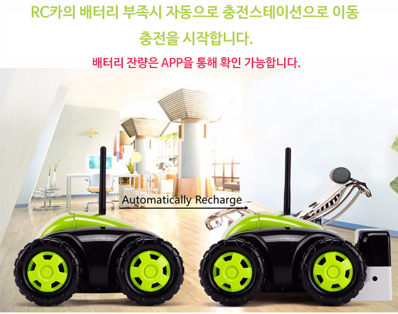 또한 배터리가 떨어지면 자동으로 도킹스테이션으로 이동 충전을 시작합니다