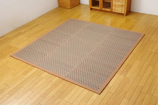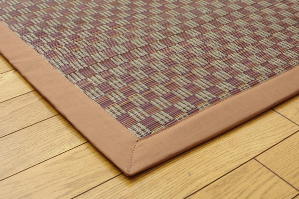 【商品名】ふっくらボリューム シンプルモダンい草ラグカーペット 『NFXダミエ』 ブラウン 190×250cm (裏:滑りにくい加工)