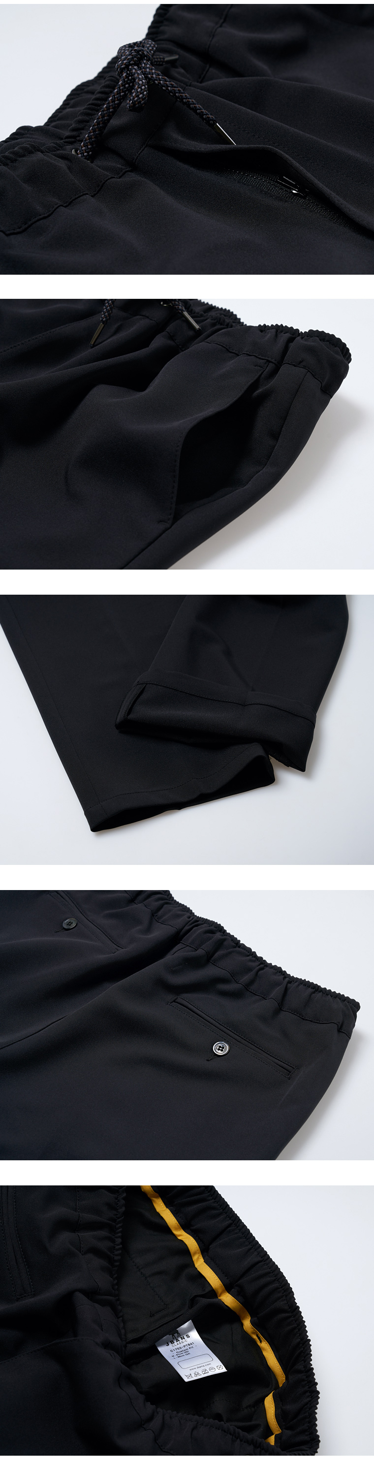 베이직한 스타일로 활용도 높은 블랙 밴딩슬랙스입니다. 깔끔한 느낌의 트윌조직 소재로 착용감이 부드럽고 다양한 아이템과 코디하기 좋은 아이템입니다. 밴딩 타입으로 착용감이 편안하며, 스판성분이 들어간 원단으로 더욱 편안한 착용감을 느낄 수 있습니다. 기본에 충실한 깔끔하고 세련된 디자인으로 데일리웨어 연출에 활용하면 좋습니다.