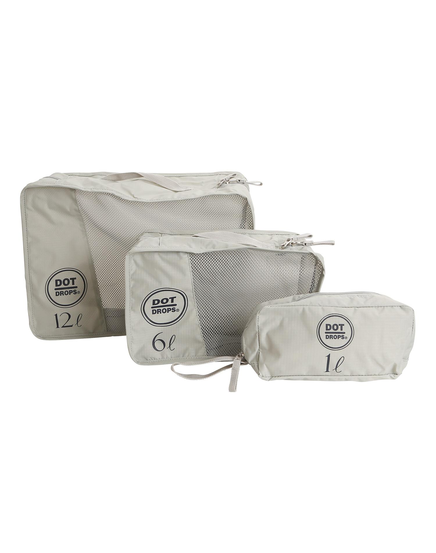 라이트 그레이 컬러에 로고장식과 그물망 디테일로 포인트를 준 파우치 셋트 입니다. 다양한 사이즈로 실용성이 돋보입니다.