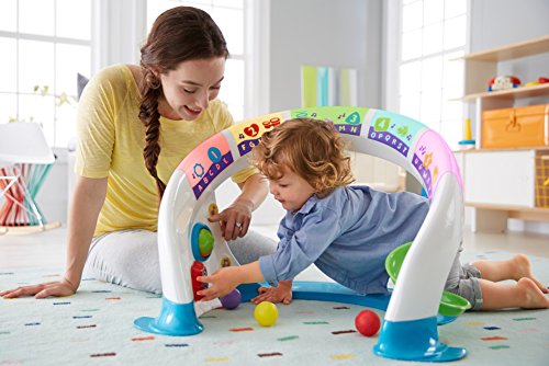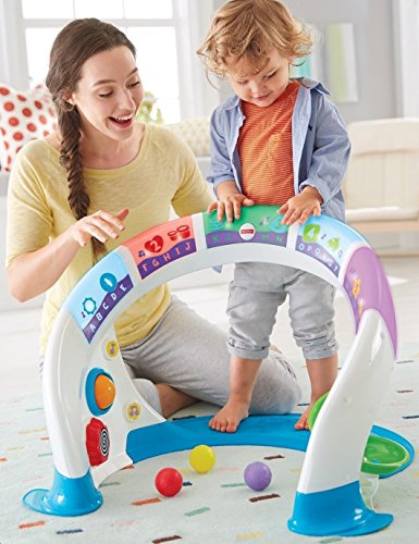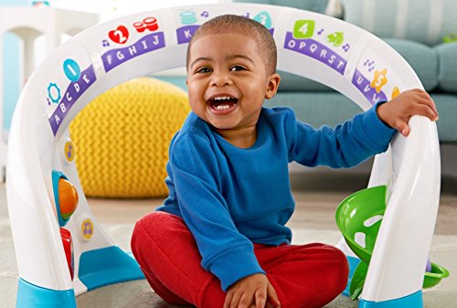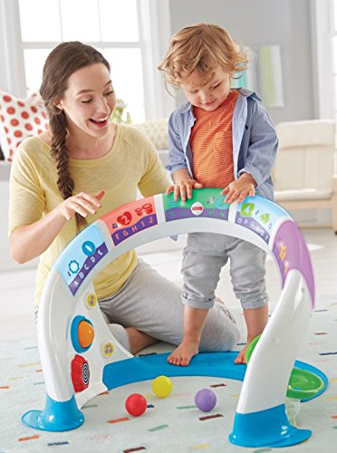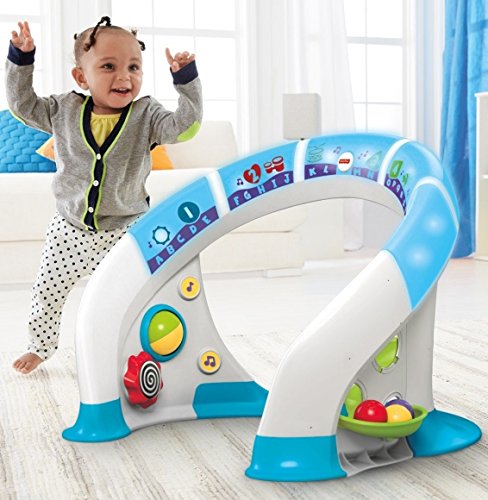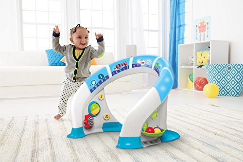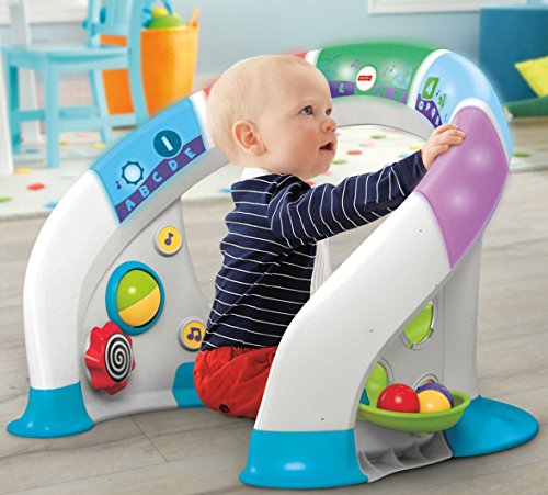 This interactive, touch-sensitive light bar features innovative Smart Touch Technology that responds to baby's touch with music, lights, colors, sung songs & much more! 3 ways to play as baby grows: Piano Play, Dance Party and Learning & Games. It's the ultimate toy for introducing baby to colors, numbers, ABCs, music, cause & effect and much more - while helping to strengthen motor skills and stimulate baby's senses of sight, hearing and touch! Busy activities, like ramps for fun ball play, a spinner and a colorful, bat-at roller ball, encourage baby to move and explore all around! This great play space will take baby from sitting to crawling to standing and cruising - providing learning and entertainment for every age, from infant to toddler!