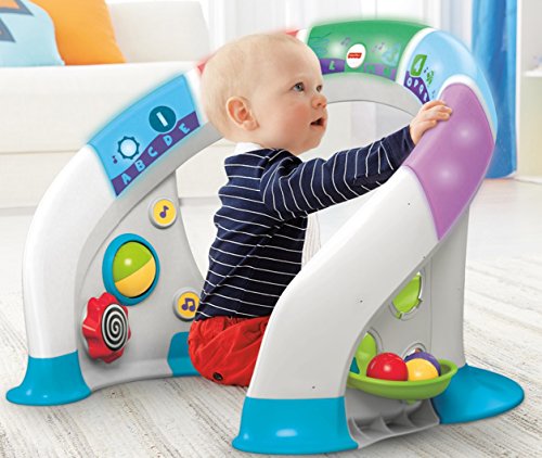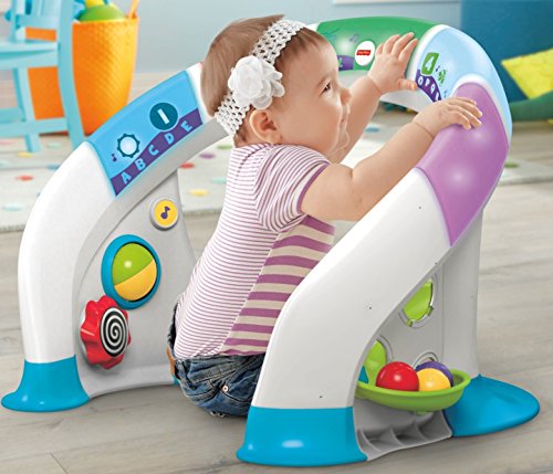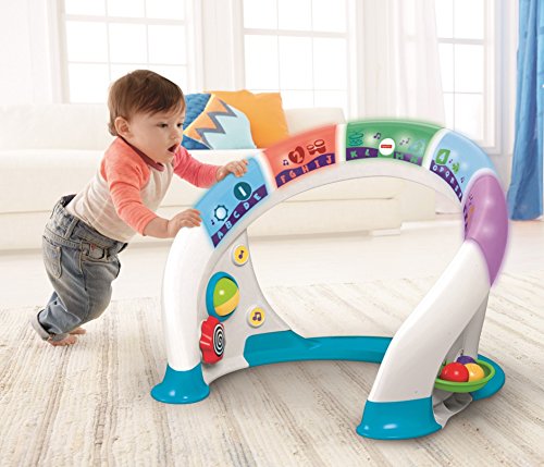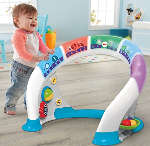3 ways to play as baby grows!Mode 1 - Piano Play Perfect for the sitting baby as baby sits in the middle and touches the bar for piano tones, music & lights!Mode 2 - Dance PartyEncourages baby to get up and move with upbeat music, spoken phrases, sounds & instruments as baby cruises around and touches the barMode 3 - Learning & GamesTeaches baby ABCs, counting, numbers and more as baby looks, cruises and follows the moving lights