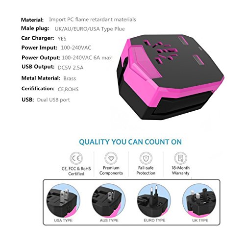 WORLDWIDE PLUG ADAPTER: Covers more than 150 Countries in Europe, Asia, Africa. Such as: Germany,Italy,UK(England,Great Britain,British), Iceland,Greece,Belgium,France,Austria,Spain,Mexico,Brazil,Argentina,Thailand,Israel,India,Nepal,Japan,Singapore,Indonesia,Maldives,China(Taiwan,HK),Korea,Australia,New Zealand,South Africa (Standard plug)etc.Compatible with South Africa Standard products, not include :some area of South Africa, India, Russia.