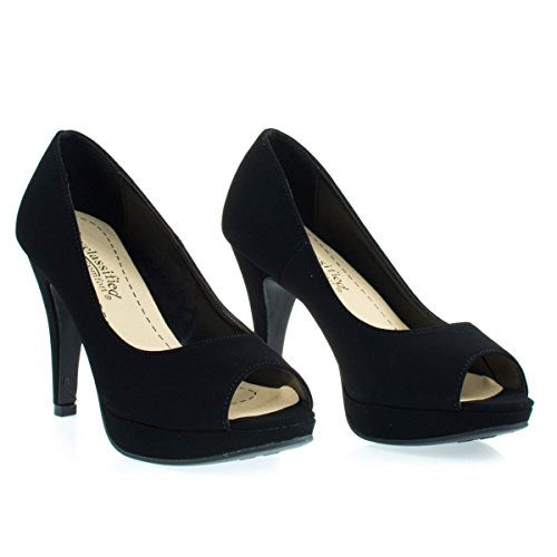 Binding : Apparel Product Description Walk all day in these super comfortable dress pump featuring thick foam padded insole, slightly wider width for comfort, peekaboo toe, modest tapered heel and a low platform. About This Shoes :Walk all day in these super comfortable dress pump featuring thick foam padded insole, slightly wider width for comfort, peekaboo toe, modest tapered heel and a low platform. Brand - City Classified Colors Available: Black Occasion: Formal Shoe Type: Pumps, Classics Shoe Style: Pumps, Classics Inner Lining: synthetic Heel Height In Inches - 3.75 Heel Style - Slim Toe Style - peep-toe Platform Height In Inches - 0.75 Shaft Height In Inches - n/a Circumference Opening - n/a Strap Type - strapless Sole - manmade All Man Made Material unless otherwise stated. Computer/Phone/Table monitors might show color differently because of its quality or calibration, we suggest you look at the photo in at least 3 monitors if you need exact color match of your shoes. 0