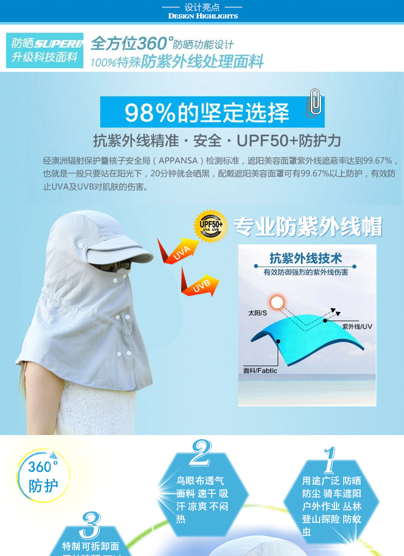 Comprehensive no dead sunblock hat design unisex neck guard