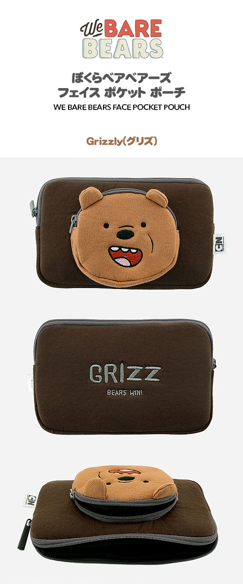 海外アニメグッズ We Bare Bears(ぼくらベアベアーズ) フェイス ポケット ポーチ(2種1択)