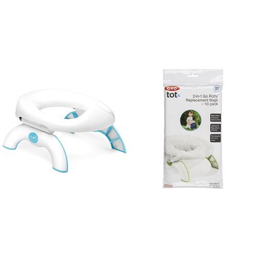 OXO Tot 2-in-1 Go Potty for Travel in Aqua and Go Potty Refill Bags, 10 Count