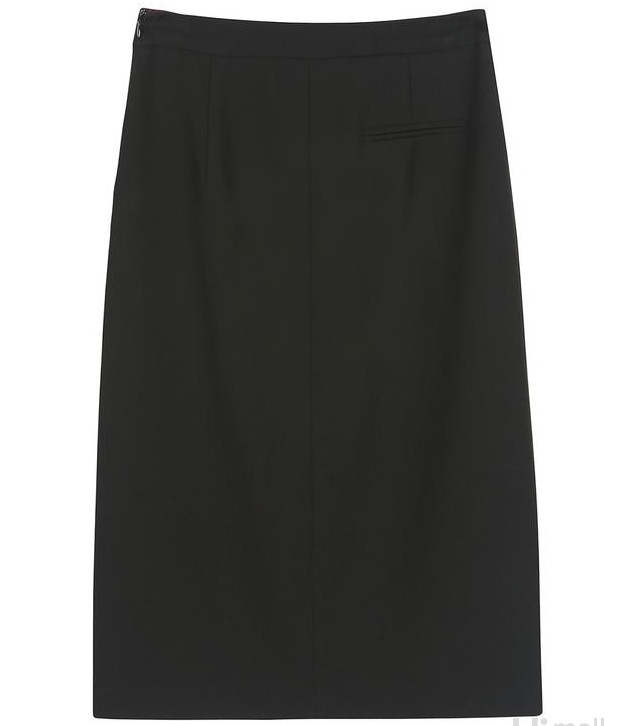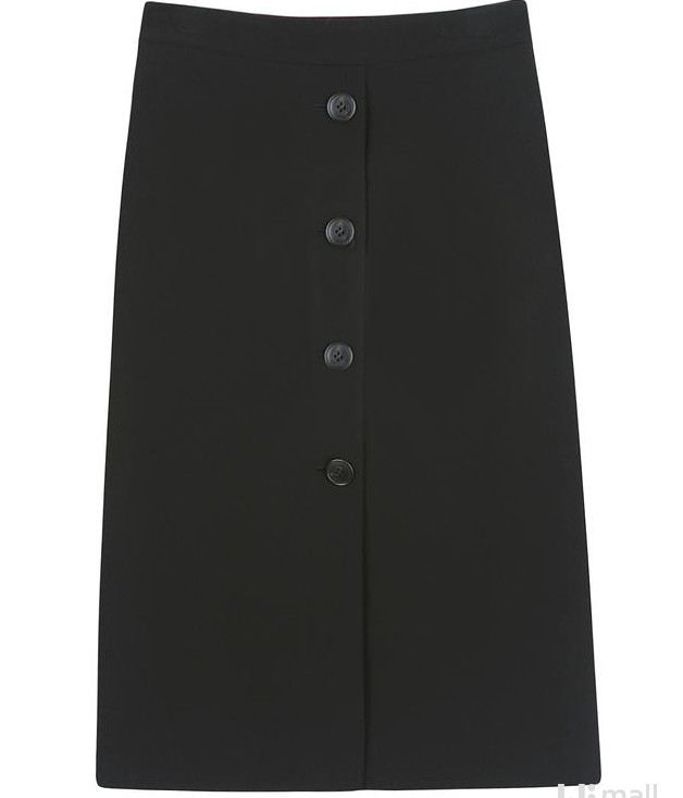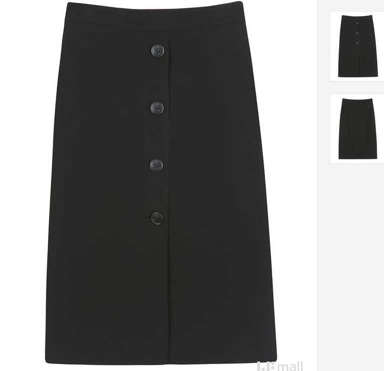 블랙 색상의 H라인 스커트로 세련된 분위기를 연출해 줍니다. 단추 장식 디테일로 유니크한 감성을 담았습니다.레이온 소재와 폴리우레탄 소재가 함유된 폴리 혼방 소재로 신축성이 있어 착용감이 편안합니다. 여성스러운 블라우스와 스타일링하여 페미닌룩을 완성할 수 있습니다.