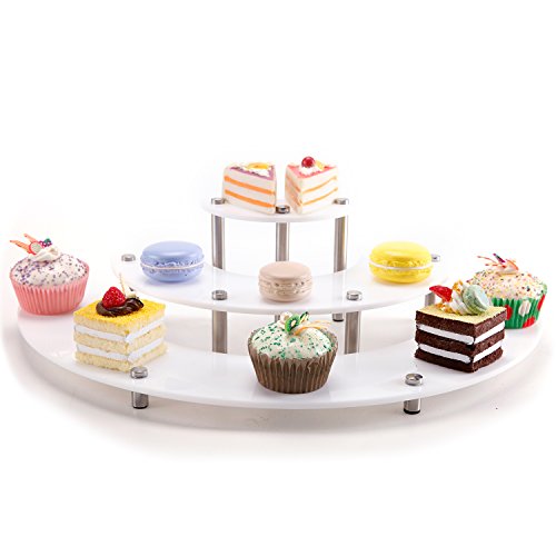 A sleek 3 tier display stand featuring a a semicircle design.