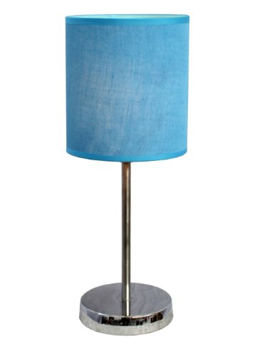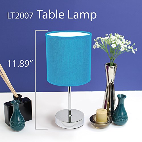 Simple Designs LT2007-BLU Chrome Mini Basic Table Lamp with Fabric Shade, Blue