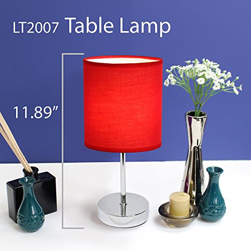 Simple Designs LT2007-RED Chrome Mini Basic Table Lamp with Fabric Shade, Red