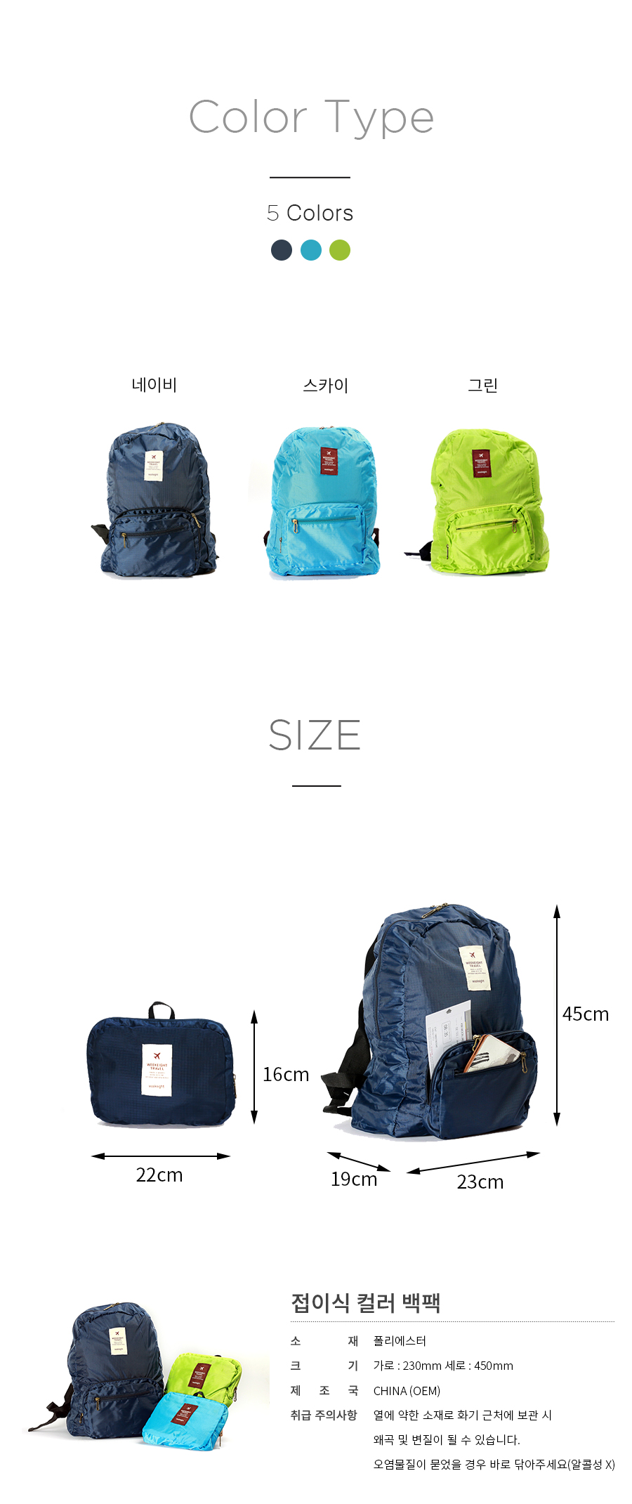 <상품명 : 여행용 포켓 접이식배낭 Week>