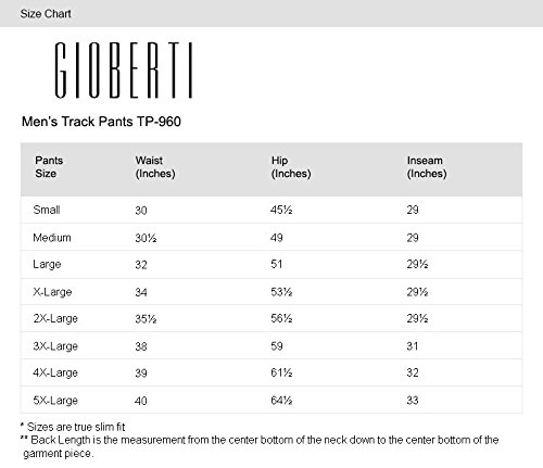 Gioberti Mens Track Running Sport Athletic Pants, Elastic Waist, Zip Bottom, Charcoal, Large