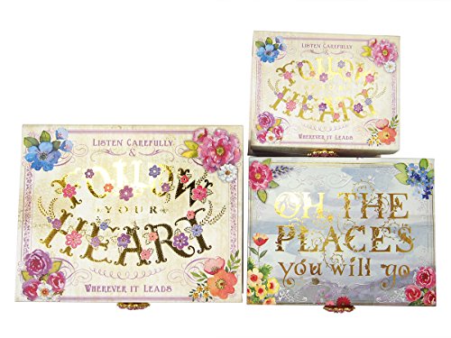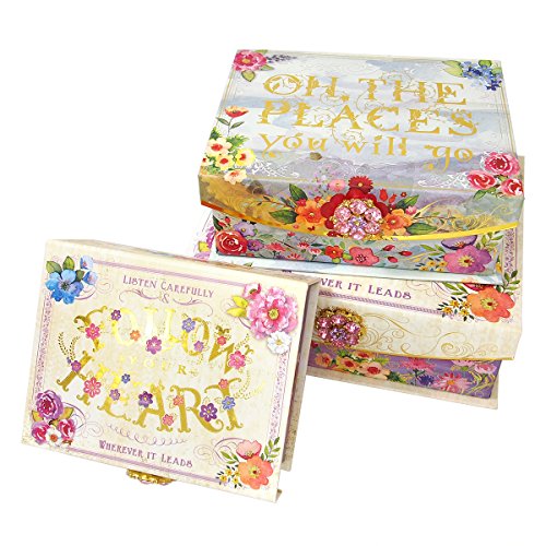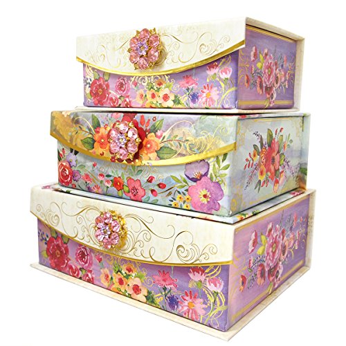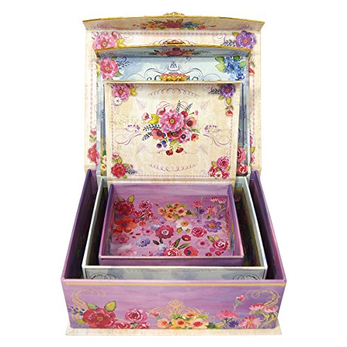 Punch Studio Brooch Flap Nesting Trinket Boxes 3-Piece Set, Floral Inspiration