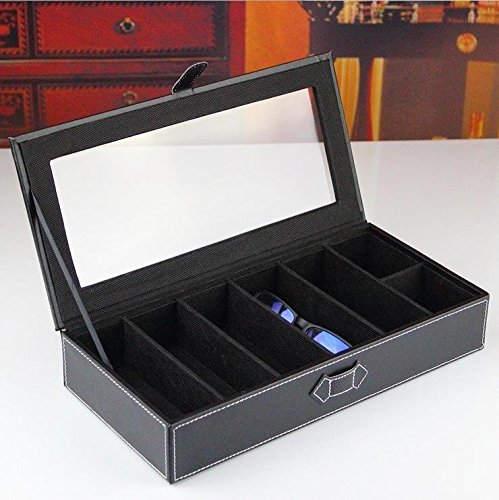 -. Title : Moldiy Black Leather Glasses Box,Sunglasses Display Case,5 Glasses 2 Watches Slots