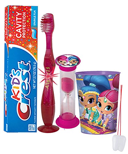 -. Title : Nickelodeon "Shimmer & Shine" Inspired 4pc Bright Smile Oral Hygiene Set! Flashing Lights Toothbrush, Toothpaste, Brushing Timer & Mouthwash Rise Cup! Plus Bonus "Remember to Brush" Visual Aid!
