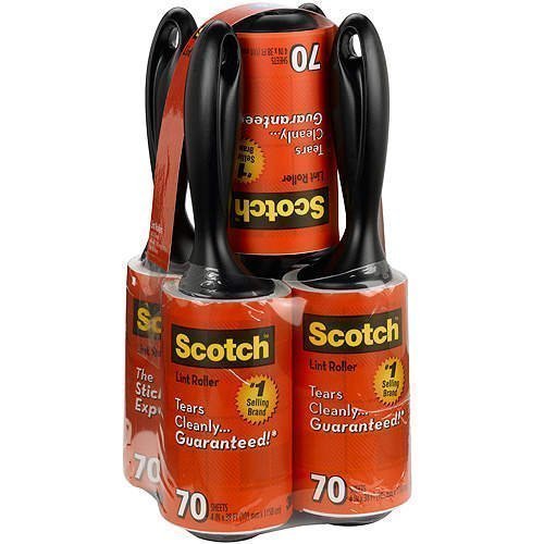 Studio : 3M Publisher : 3M Binding : Kitchen Product Description The only lint roller made with ScotchTM Brand adhesive. Lint, dandruff, dust and pet hair leaves clothes looking unkept. Now, you can be lint-free in seconds! With 3M Scotch Lint Rollers you can swipe away lint for that fresh-from-the-cleaners look, anytime, anywhere! These ultra-handy lint rollers feature a 4" wide adhesive roller strip around an ergonomically designed handle. Simply roll the strip across clothes, fabric, furniture, drapes, bedding and more, to remove pet hair, dust and debris. Each roller includes 70 tear-away sheets, so with this pack of 5, you'll have a total of 350 sheets of lint busting power! Whether you're at home, at work, or out on the town, 3M Scotch lint rollers will keep you looking sharp and debris-free! Pick up your 5 pack today! 0