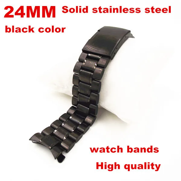 1 개 고품질 24mm 고체 스테인레스 스틸 링크 시계 밴드 시계 끈 검은 색