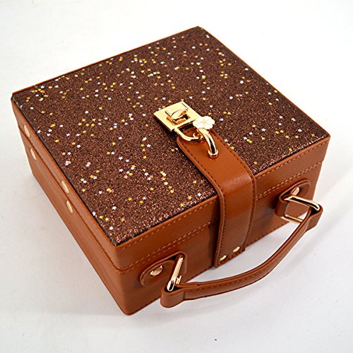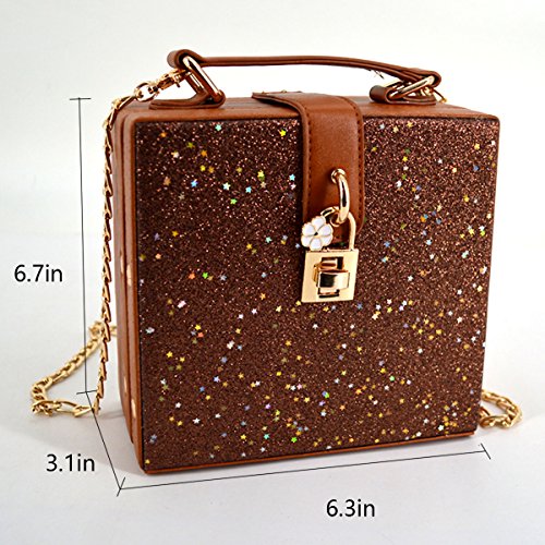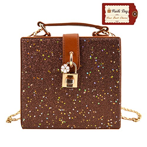 Heidi Sequins Box Clutch Top Handle Cross Body Chain Shoulder Bag Evening Party Handbag (coffee)