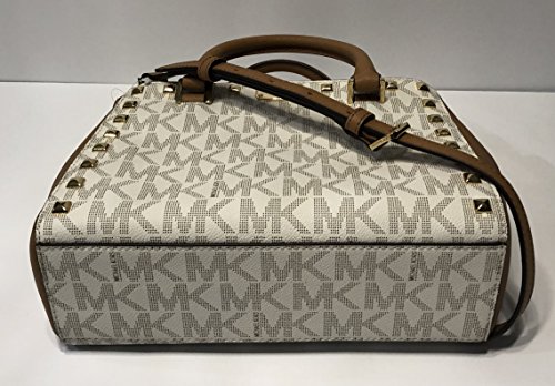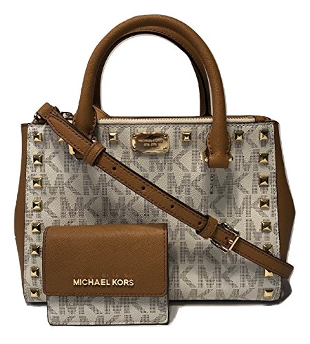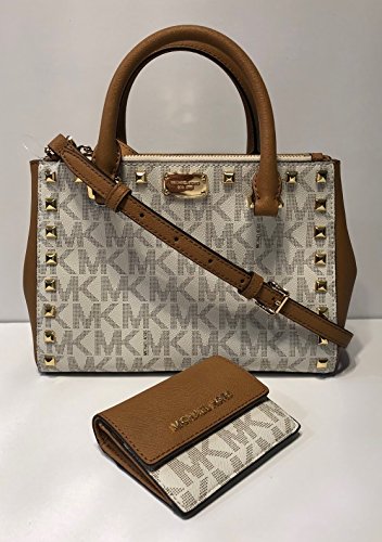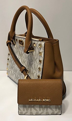 MICHAEL Michael Kors Kellen Studded XS Satchel bundled with Michael Kors Jet Set Card Case ID Wallet (Signature MK Vanilla/Acorn)