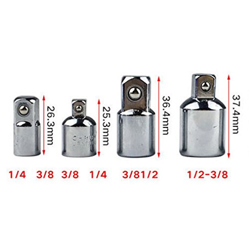 -. Feature : -- High quality CRV chrome vanadium steel provides this adapter with premium-quality, durable overall quenching, high hardness, rust-proof surface. / -- Surface treatment: Polished chrome ensures the high quality for use. / -- Universal application, which can be used for general socket wrenchs. / -- Size: / 1/2 " hole -3/8" head
