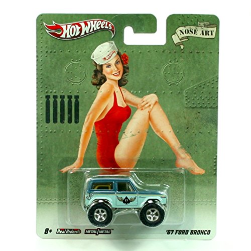 -. Binding : Toy -. Brand : Retro Series -. EAN : 0655257543161 -. Feature : '67 FORD BRONCO * NOSE ART * Hot Wheels 2011 Nostalgia Series 1:64 Scale Die-Cast Vehicle / Includes die-cast bodies, die-cast chassis and Real Riders tires! / 1:64 SCALE vehicle measures approximately 3 INCHES long. May not be compatible with some Hot Wheels track or play sets / Originally released in 2011 - Retired /Out of production! / Ages 8 and up. From Mattel. -. IsAdultProduct : 0 -. Label : Hot Wheels -. Manufacturer : Hot Wheels -. Model : W6642 -. PackageQuantity : 1 -. ProductGroup : Toy -. ProductTypeName : TOYS_AND_GAMES -. Publisher : Hot Wheels -. Studio : Hot Wheels -. Title : '67 FORD BRONCO * NOSE ART * Hot Wheels 2011 Nostalgia Series 1:64 Scale Die-Cast Vehicle -. UPC : 655257543161