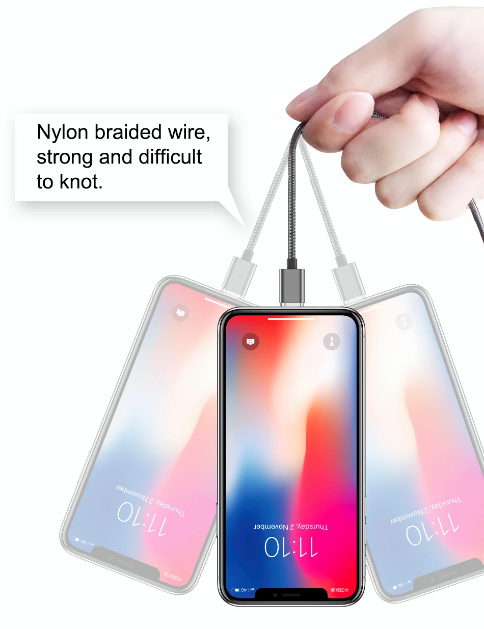 Type:2 in 1 Fast Charging USB Cable For iPhone For iPad for Android Phone