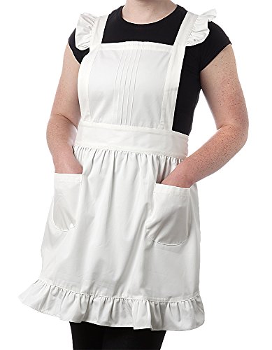 - Title : Womens Retro Traditional White Apron with Bib and Pockets, Victorian Pinafore for Cooking or Costume