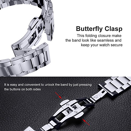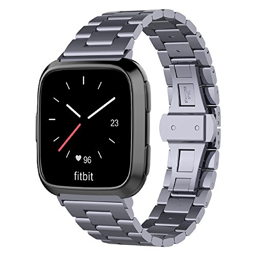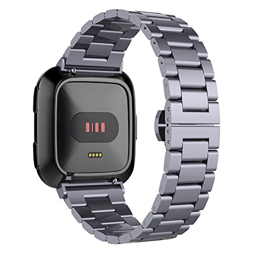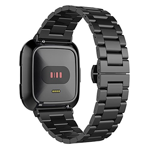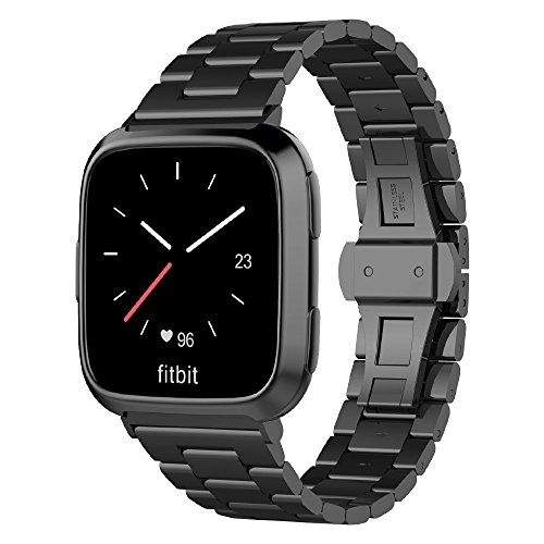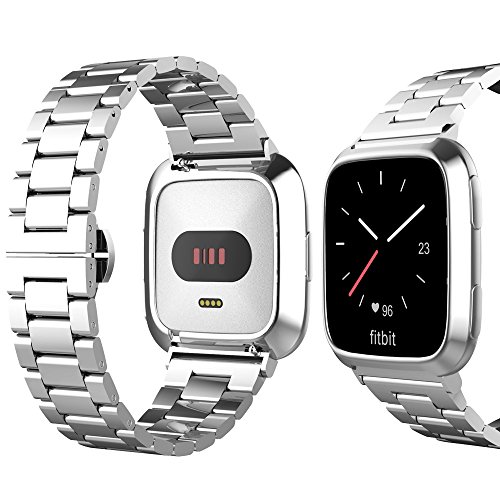 -. Title : UMTELE For Fitbit Versa Band, Slim Stainless Steel Band Low Profile Metal Strap with Butterfly Clasp [Scratch Resistant Case Included] for Fitbit Versa