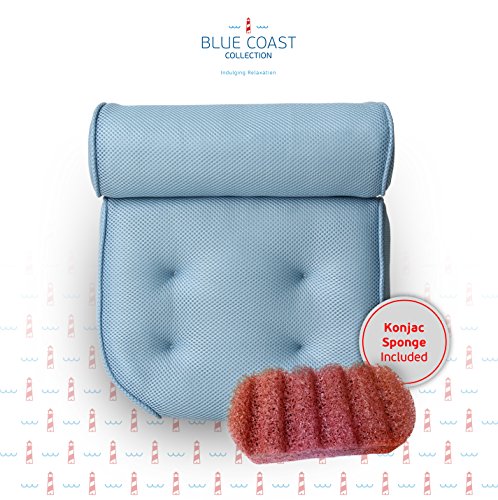ENJOY LONGER, MORE COMFORTABLE BATHS » The Bonnieu is a truly premium addition to your spa tub accessories and an amazing stress relief ritual. Great to use with your bath caddy or tray, read a book, enjoy a nice cup of wine, bubbles bath, salts, or simply lay back and relax. And, this bath pillow set comes with a bonus antibacterial body and facial KONJAC BATH SPONGE, a great exfoliation and massage tool to use in the bath or shower. Brings back the natural glow of the skin.