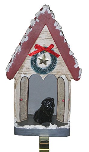 Black Pug Doghouse Holiday Christmas Stocking Holder