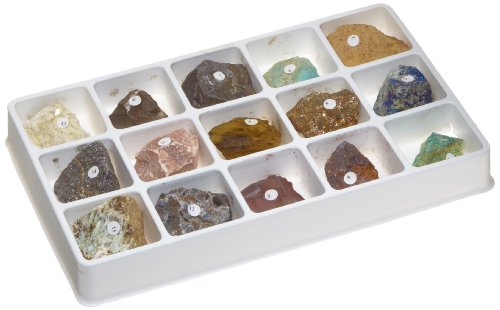 -. Feature : Set of 15 common metal ore specimens for studying rock and mineral properties in classroom demonstrations and experiments / Ore is a rock containing economically valuable mineral elements or compounds that are typically extracted in mining and refining operations / Includes bauxite, chalcopyrite, malachite, chrysocolla, pyrite, hematite, magnetite, limonite, banded iron formation of silica and hematite, siderite, dolomite, pyrolusite, cassiterite, sphalerite, and beryl / Each specimen is approximately 1-1/2" long / Comes with a segmented tray for organizing and displaying the specimens
