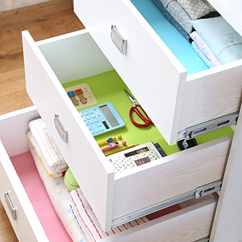 -. Feature : Flexible solid ethylene-vinyl (EVA) material, BPA free, odor and stains free, mildew and moisture free, waterproof, safe to place produce, fruit and vegetables in refrigerator bins/ trays. / A fantastic way of keeping fruit & vegetables fresher for longer, this shelf liner helps preserve perishable foods by preventing bruising and deterring mould growth. / This protective shelf liner has a polka dots textured design on top side while bottom is smooth pattern, good grip and removable, nonslip and non stick, no sticky residue after changing them out. / A bit thicker makes it easy to cut to fit and lays flat after cutting, they don't rip easily, and you don't feel every crack and crevice that's beneath the liner when using it in your tool box/chest. / Grease and water proof, when get dirty, it also very easy to clean. Great for kitchen/pantry cupboards or camper cabinet drawers protected organization, great gift for housewarming.