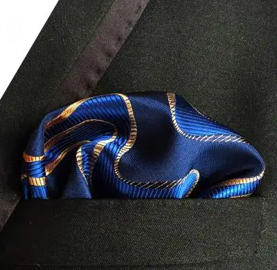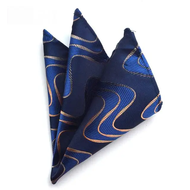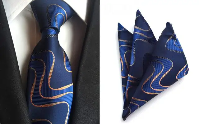 높은 품질의 넥타이 세트 네이비 블루 갈색 웨이브 라인 실크 남성 넥타이 자카드 짠 넥타이 Gravata 넥타이 포켓 스퀘어 정장 세트