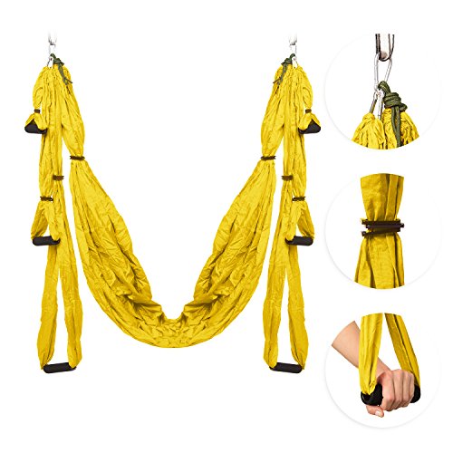 Are you searching for a solution to relieve your back pain? Search no more because the inversion therapy is the answer. Newk Yoga offers customers: - 1 Yoga Swing Seat/Hammock -2 Yoga Swing Arms with 3 comfortable, thick padded handles per yoga swing arm -2 Multi-loop Daisy Chains for easy height adjustment -4 High Strength Carabiners -1 Travel Drawstring Bag -1 Sweat Wristband -1 Exercise Loop Band -Instructions Guide (PDF Format) Relieves back pain: The Yoga Trapeze by Newk Yoga is the extension tool that you need to heal your back. It is meant for both outdoor and indoor workout. You can mount it on a tree, ceiling, door frame or exposed beam with the help of the mounting accessories - the daisy chains included. Immediate Results: Our yoga trapeze offers instant pain relief, being more effective than multiple series of chiropractic adjustments or hours of deep tissue massage. Improves Back Bends: The Newk Yoga hammock is suitable for both beginners and advanced yogis. It offers the deepest and safest backbend one can experience, allowing the spine to heal. High-quality: The Newk Yoga trapeze is made from parachute fabric that has been submitted to stress testing to 600 lbs. It is also waterproof and machine washable material. 100% Satisfaction Guarantee! Our yoga trapeze is backed by our manufacturer 30 day money back guarantee with 1 year free replacement guarantee. Click on the Add to the Cart button and get your Aerial Yoga Trapeze! 0 |