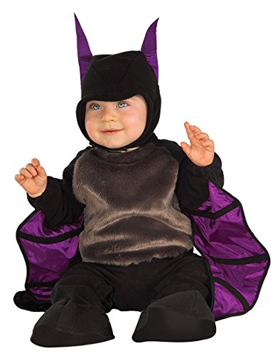 -. Brand : Rubie's -. Color : Black / Purple -. Department : unisex-baby -. Feature : Fun little bat themed costume for toddlers / Snaps on back and legs for easy changing / Ears and wings are trimmed with purple / Includes matching head piece -. ProductGroup : Apparel -. ProductTypeName : BABY_COSTUME -. SKU : BABY23 -. Title : Infant Little Bat Costume by Rubies Costume Company